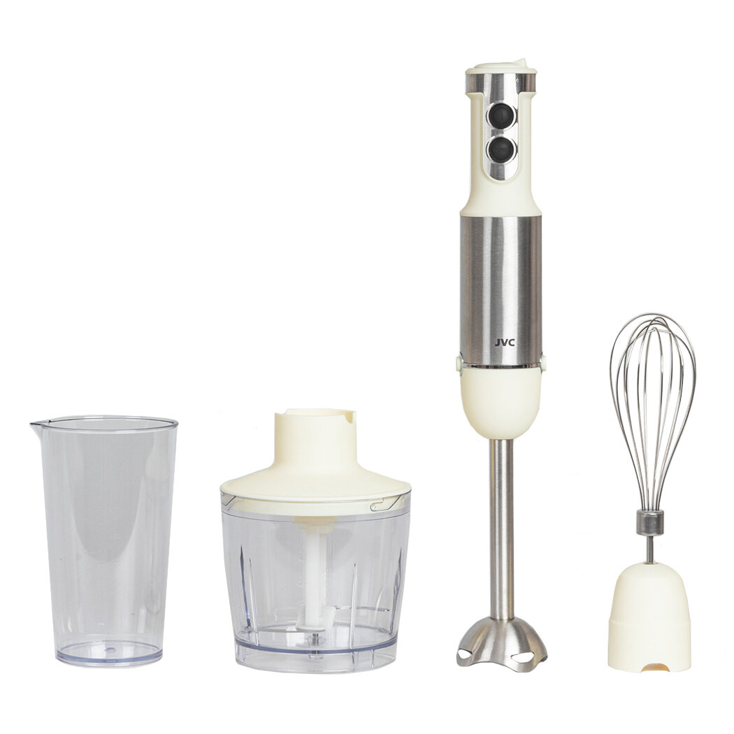 Блендер погружной JVC с измельчителем, 3 насадки, 6 скоростей, режим Турбо, LED подсветка, 1200 Вт