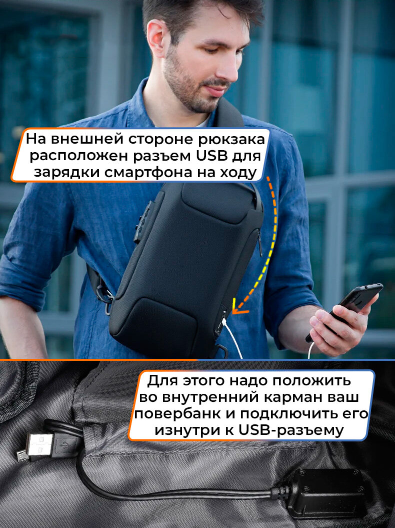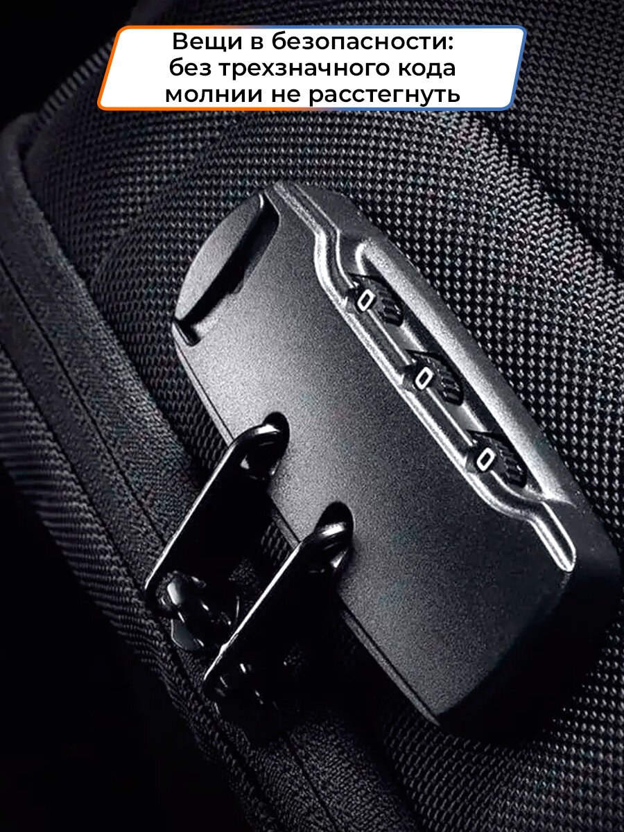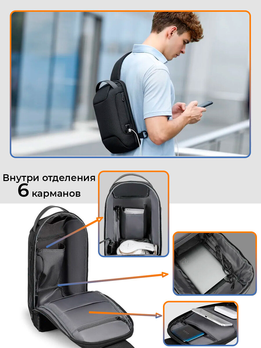 Рюкзак-антивор мужской городской однолямочный через плечо Mark Ryden маленький 8л, для планшета 9.7", водонепроницаемый, с кодовым замком, цвет черный