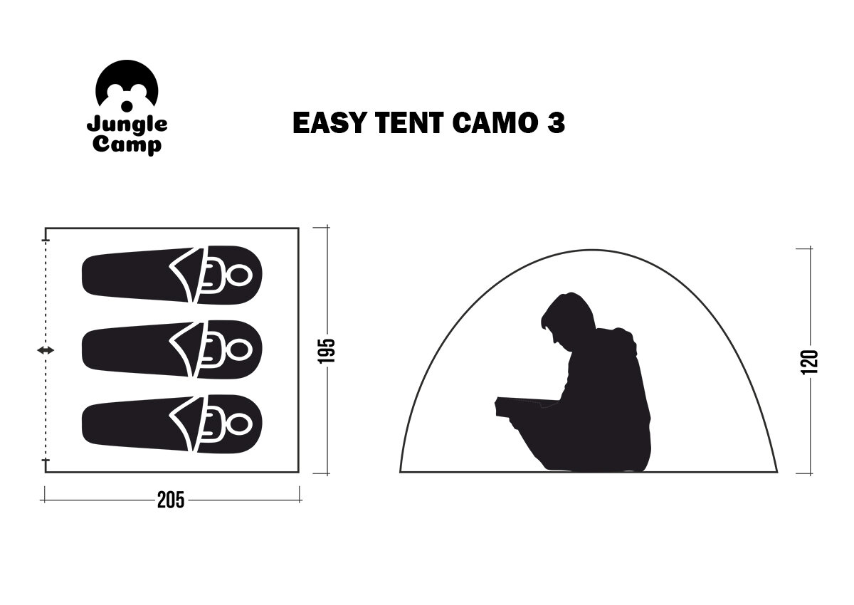 Палатка трехместная JUNGLE CAMP Easy Tent Camo 3, цвет: зеленый/серый интересное: