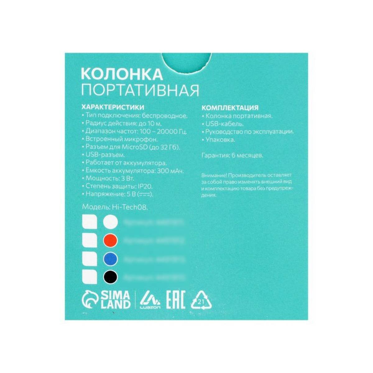Портативная колонка LuazON Hi-Tech08, 3 Вт, 300 мАч, microSD, USB, черная (арт. 4491910) интересное: