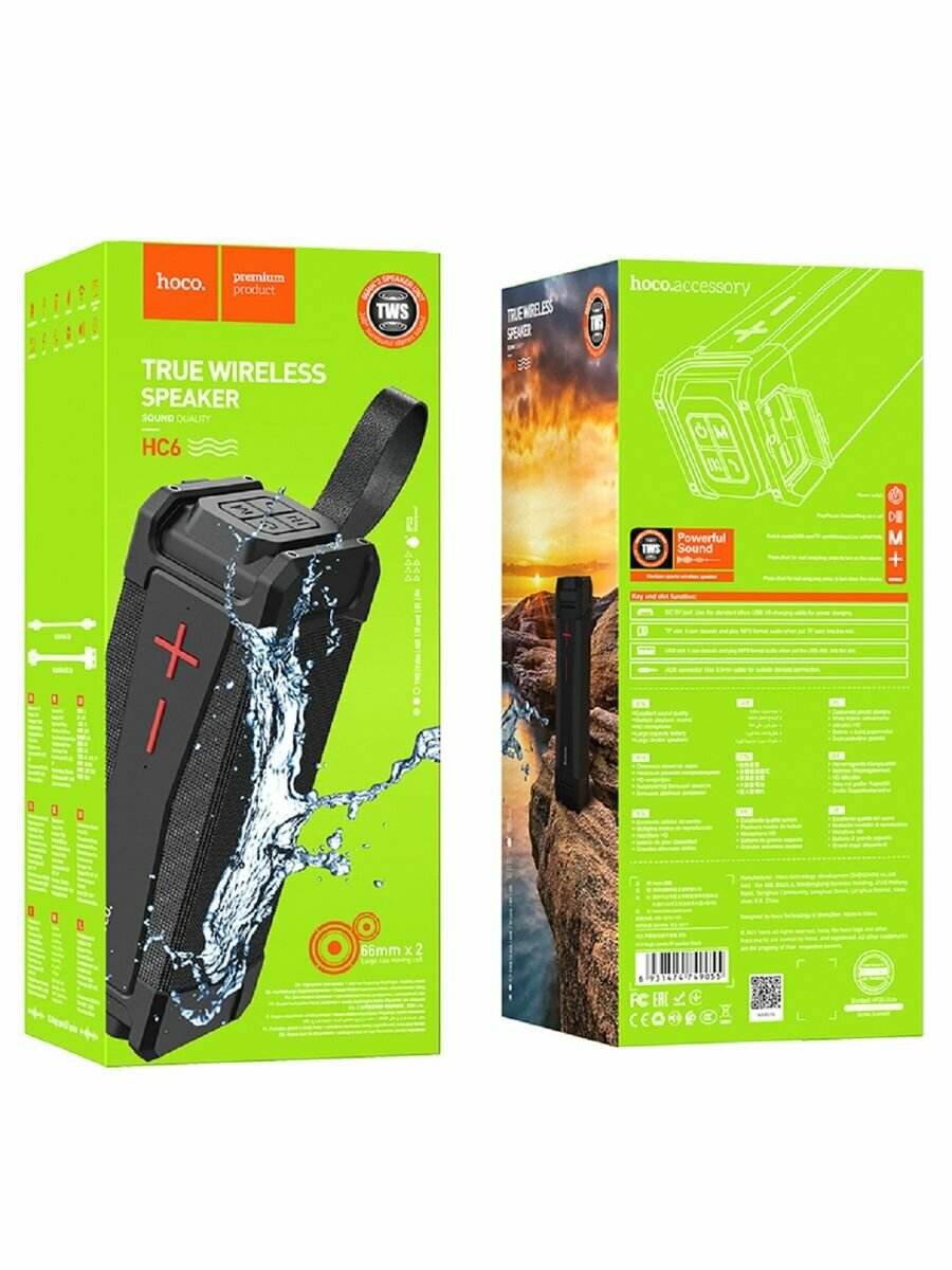 Беспроводная стерео колонка HOCO HC6 4000mAh, TWS, BT 5.0, U-disk, TF, FM, Waterproof IPX5, Черный