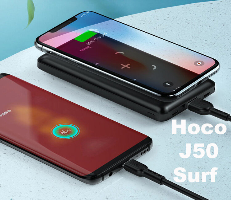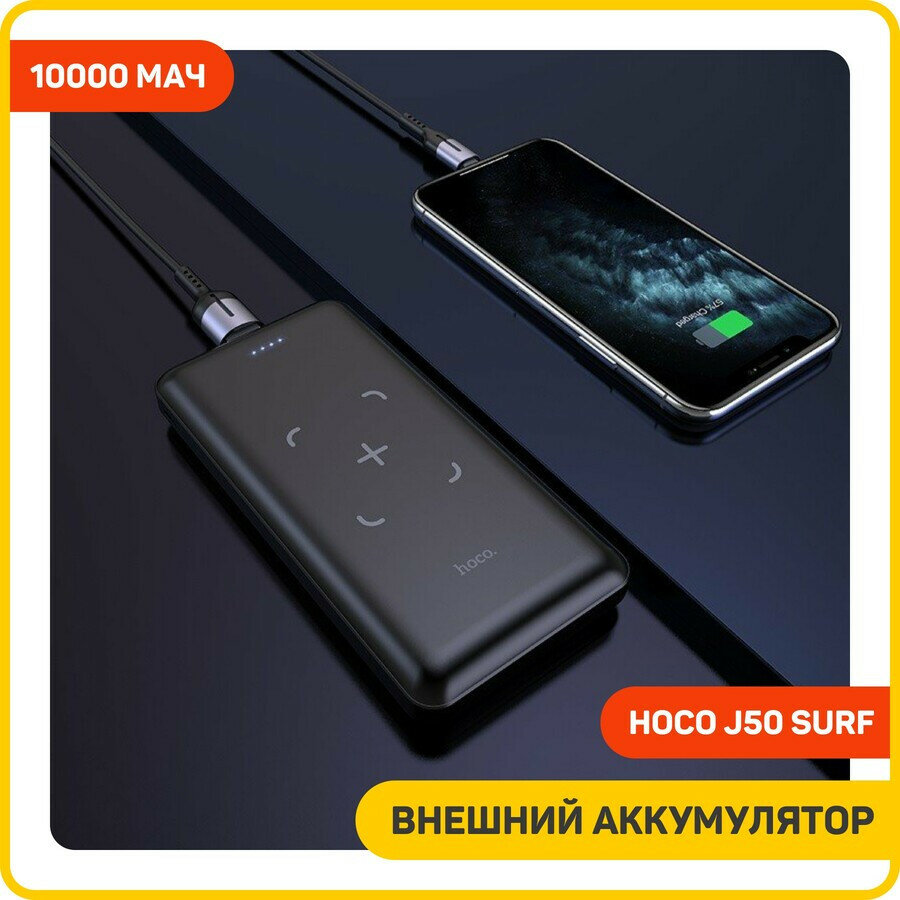 Внешний аккумулятор Powerbank HOCO J50 Surf, с беспроводной зарядкой, 2A, 10000 mAh, черный