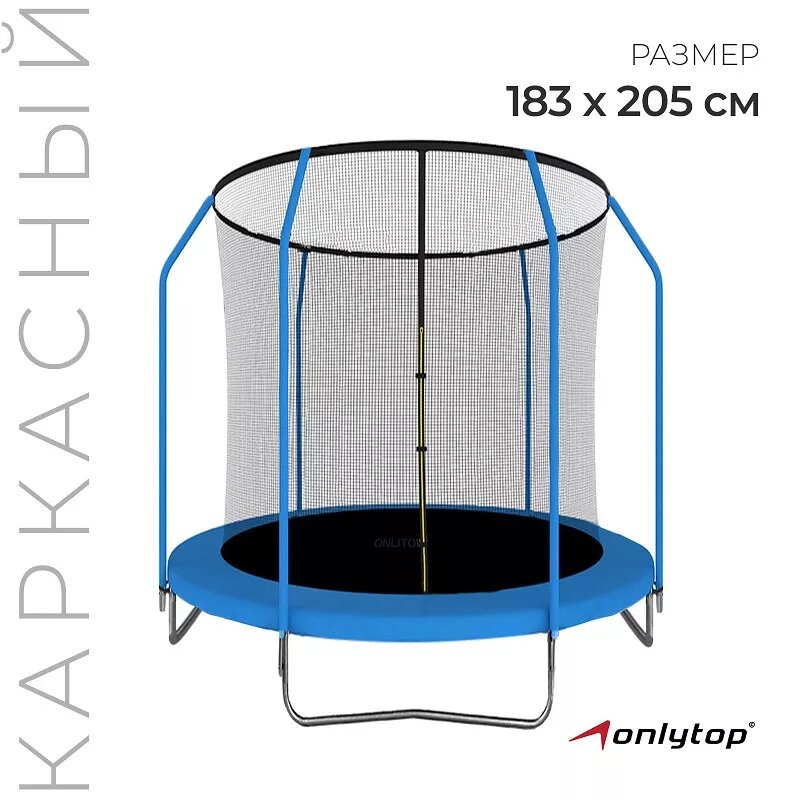 Батут ONLITOP, d 183 см, с внутренней сеткой, цвет синий