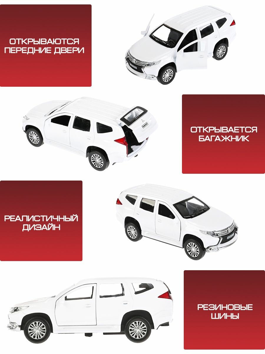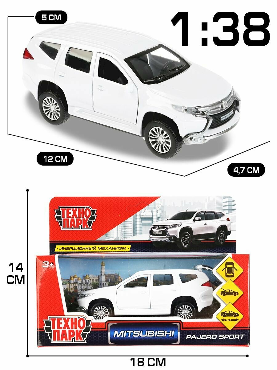 Машинка детская Mitsubishi Pajero Sport 12 см, Технопарк, белая, открываются двери и багажник, металлический корпус