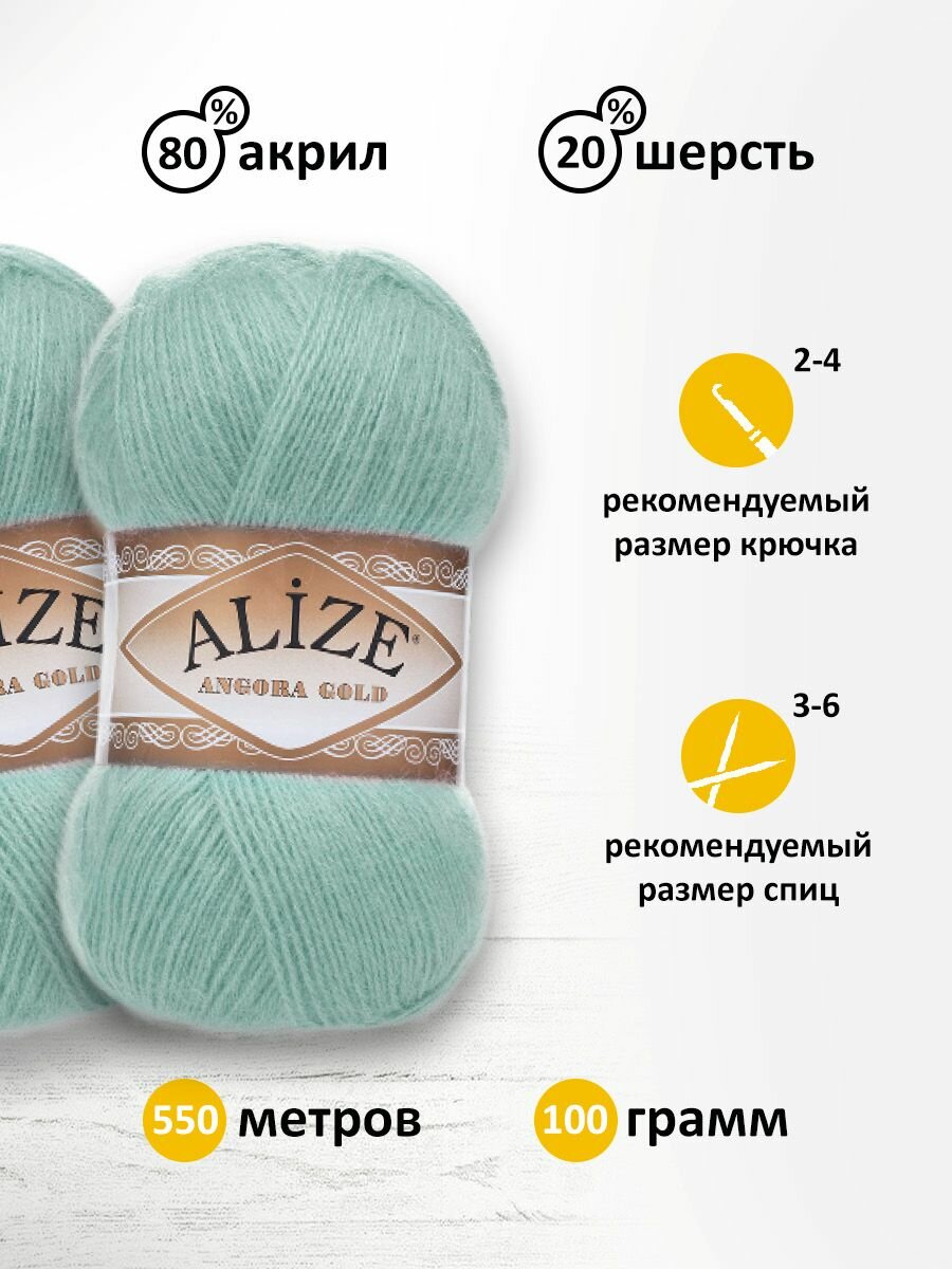 пряжа Ангора Голд Alize Angora Gold упаковка 5 мотков 100 г. 550 м. 20% шерсть 80% акрил цвет 114 мята