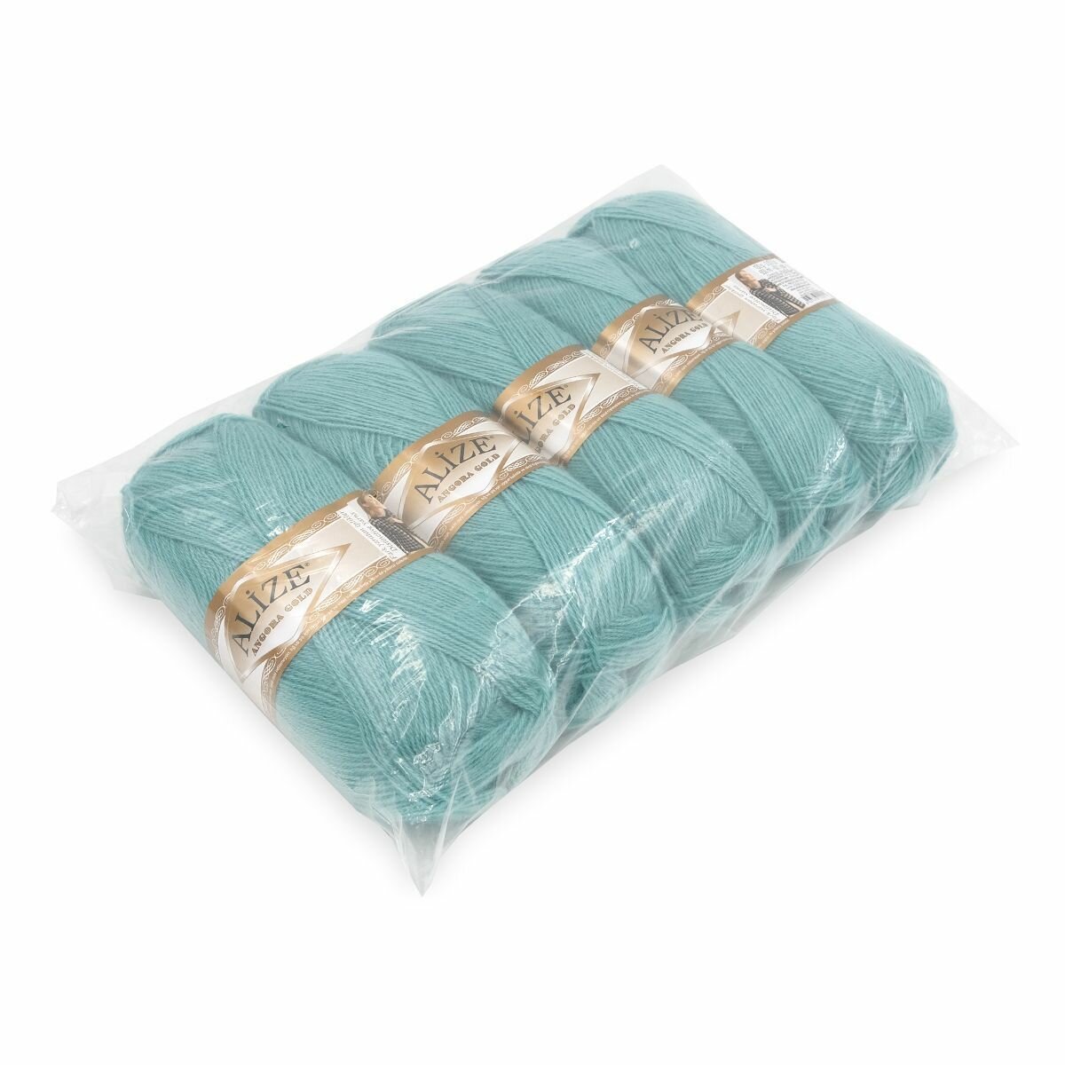Пряжа ALIZE 'Angora Gold' 100гр. 550м (80% акрил, 20% шерсть) ТУ (40 голубой). В комплекте 5 штук.