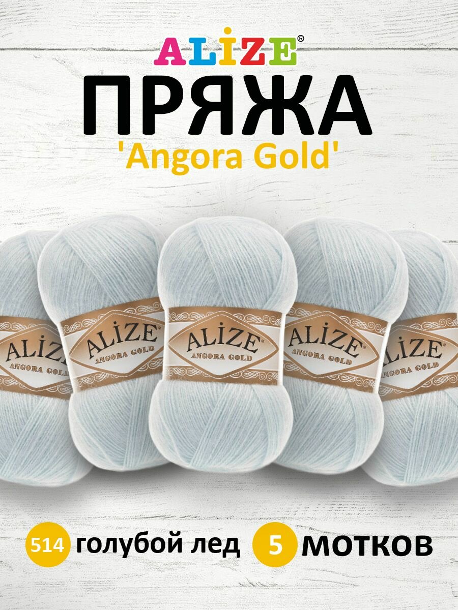 Купить Пряжа Alize Angora Gold (Ангора Голд) - 5 мотков Цвет: цвет зимнее небо 514, 20% шерсть, 80% акрил 100г 550м