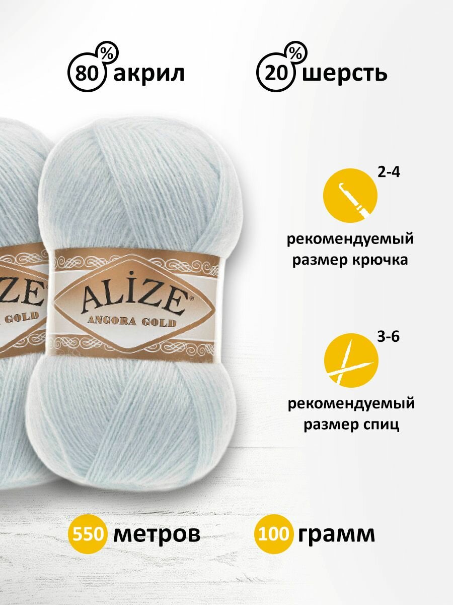 Пряжа ALIZE 'Angora Gold' 100гр. 550м (80% акрил, 20% шерсть) ТУ (40 голубой). В комплекте 5 штук.