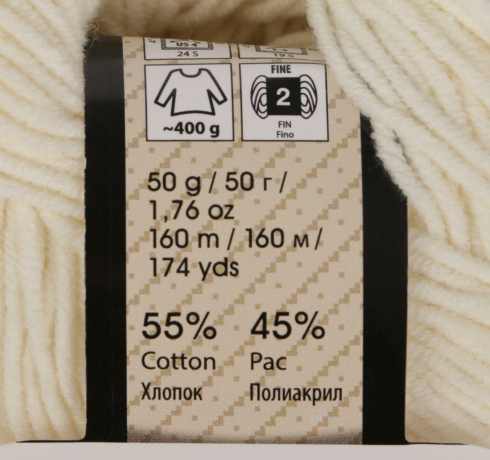 Купить Пряжа YarnArt Jeans (55% хлопок, 45% акрил) 50 гр, 160 м, 03 молочный , 1 моток
