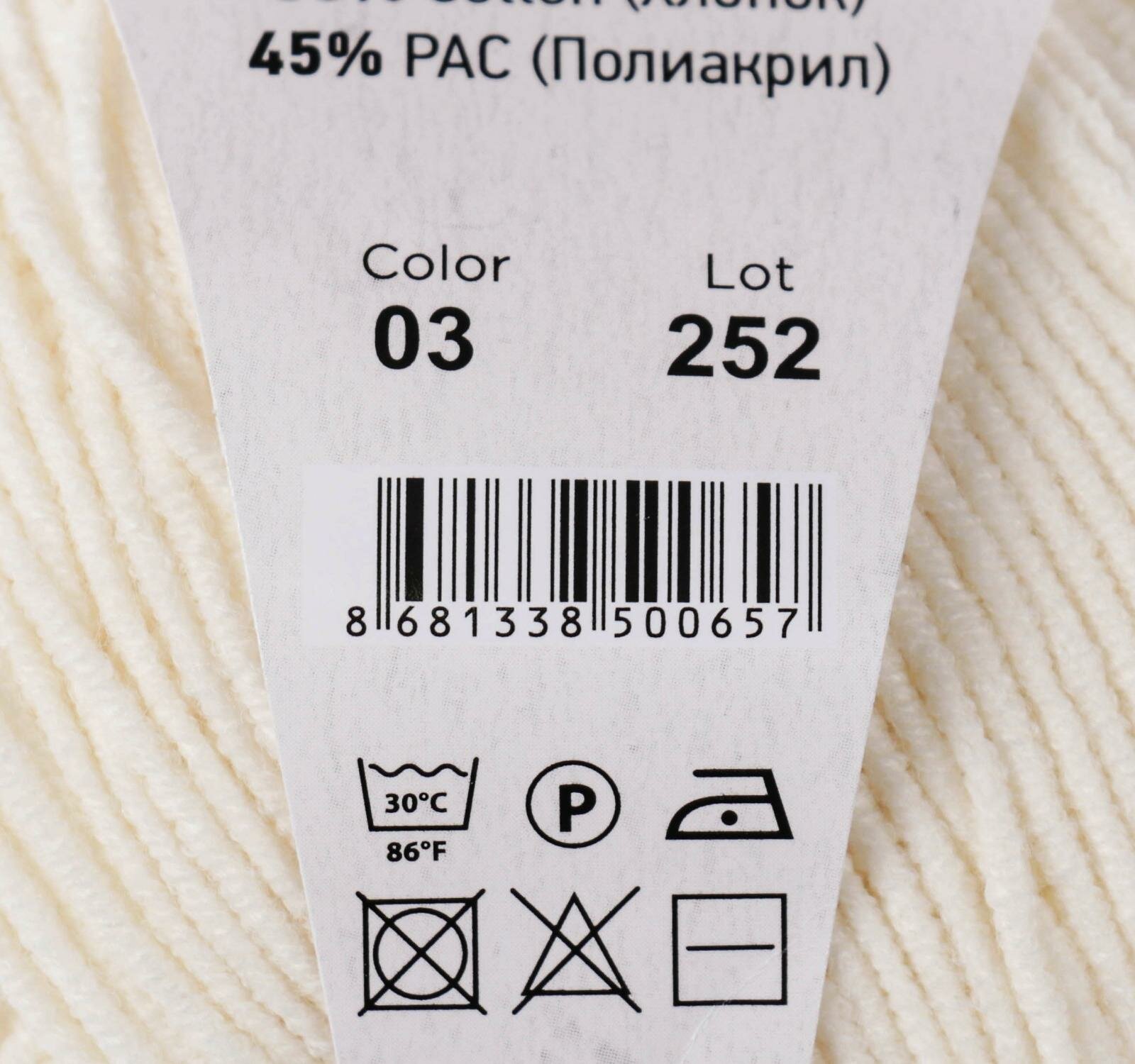 Пряжа YarnArt Jeans (55% хлопок, 45% акрил) 50 гр, 160 м, 03 молочный , 1 моток интересное: