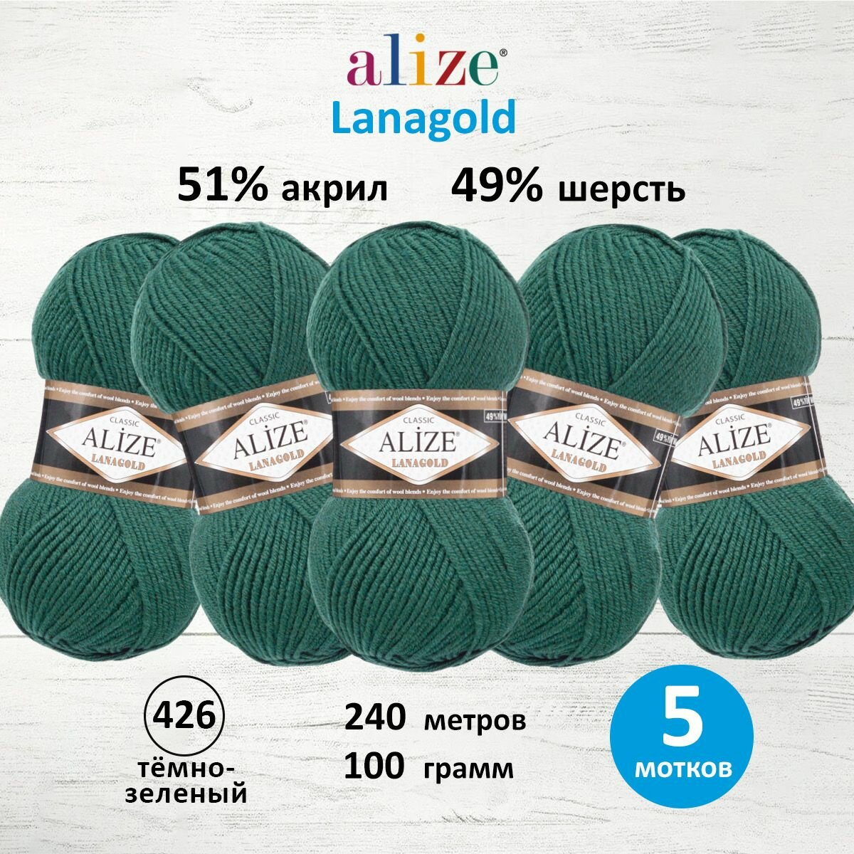 Купить Пряжа для вязания ALIZE 'Lanagold', 100г, 240м (49% шерсть, 51% акрил) (426 темно-зеленый), 5 мотков