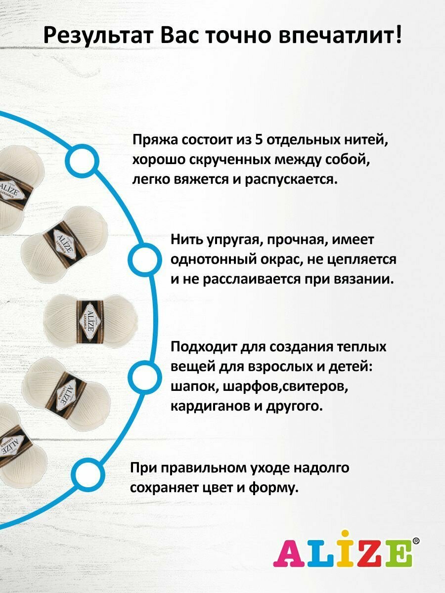 СохранитьПряжа Alize Lanagold (Ализе Ланаголд) - 5 мотков 62 молочный 49% шерсть, 51% акрил 240м/100г интересное: