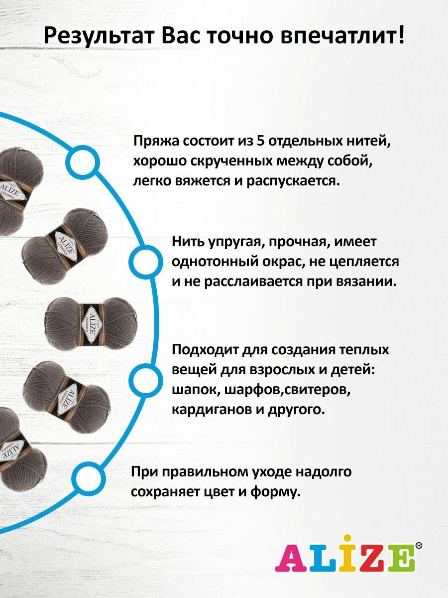 СохранитьПряжа для вязания Alize Lanagold Classic 348 темно-серый, 100 г, 240 м, 5 штук интересное: