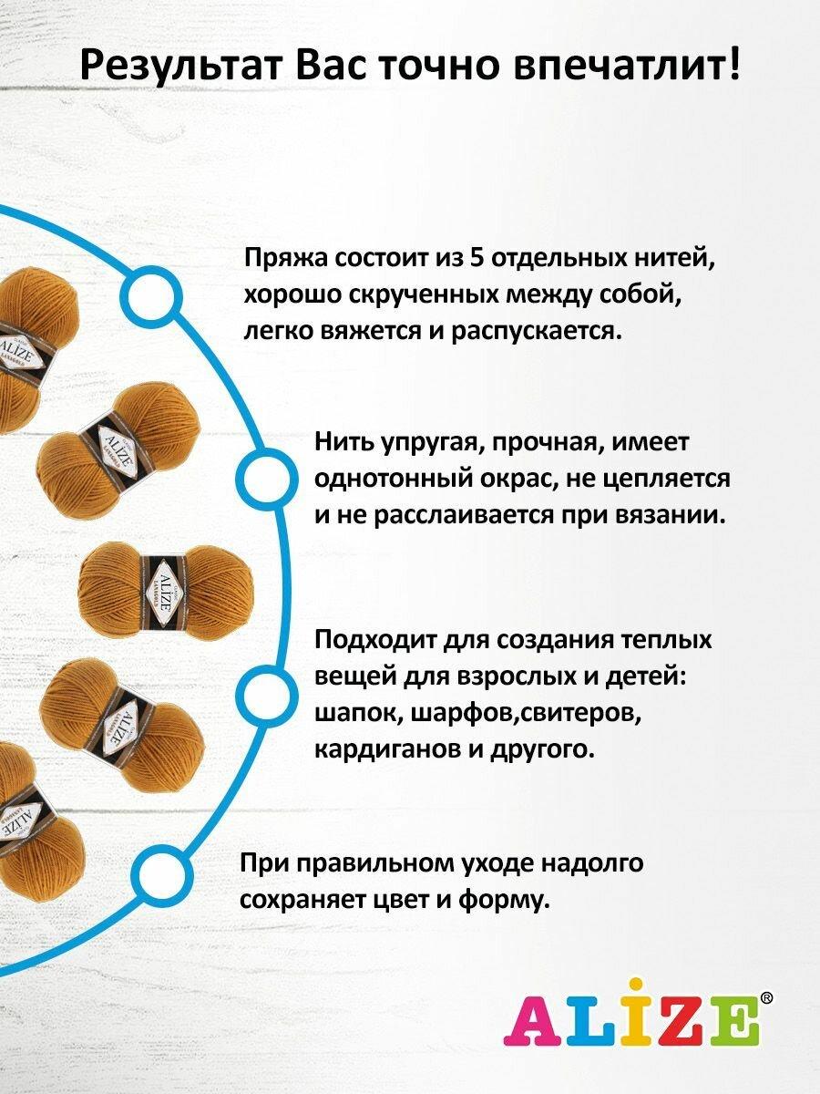 СохранитьПряжа для вязания ALIZE 'Lanagold', 100г, 240м (49% шерсть, 51% акрил) (645 горчичный), 5 мотков интересное: