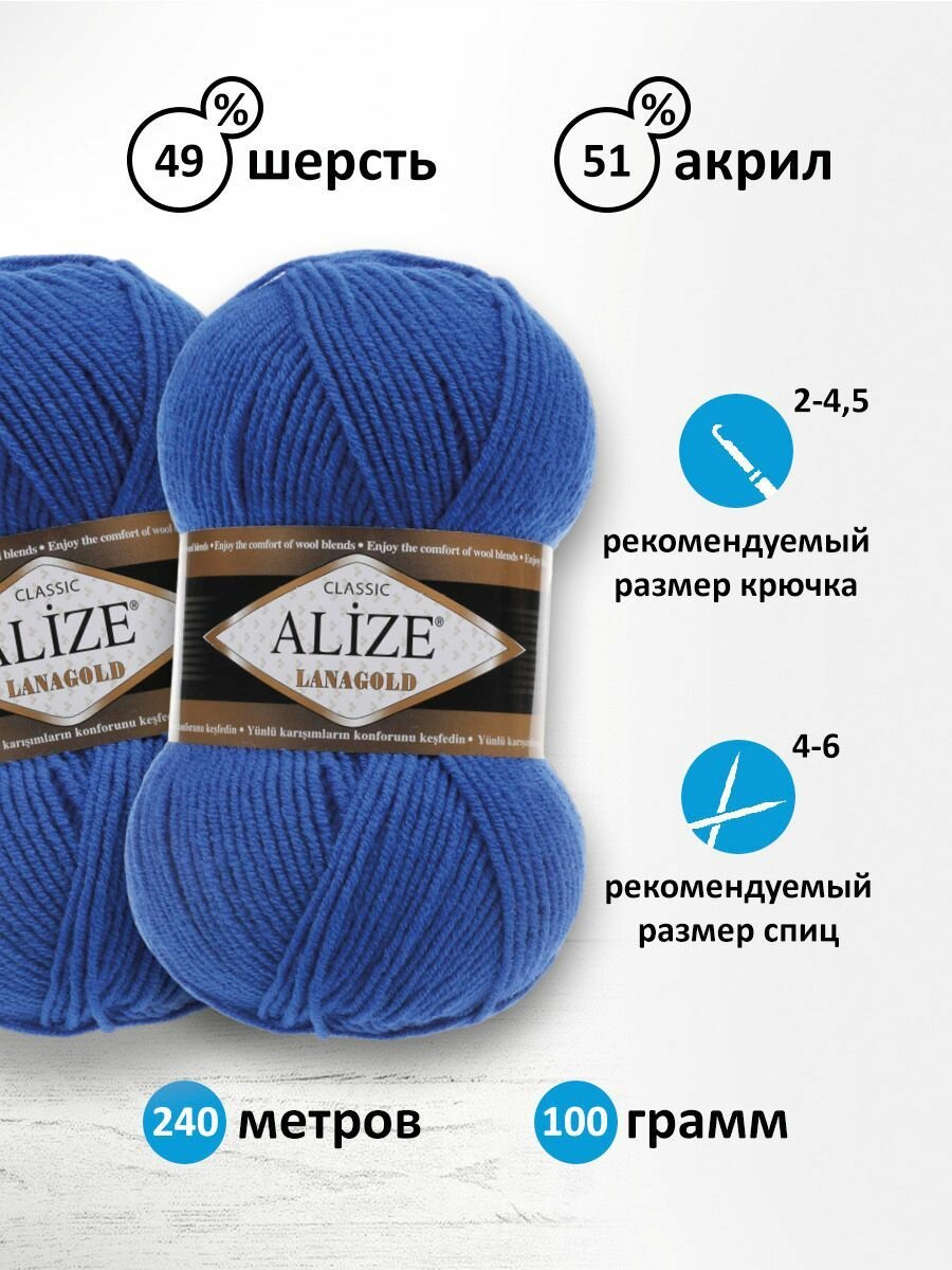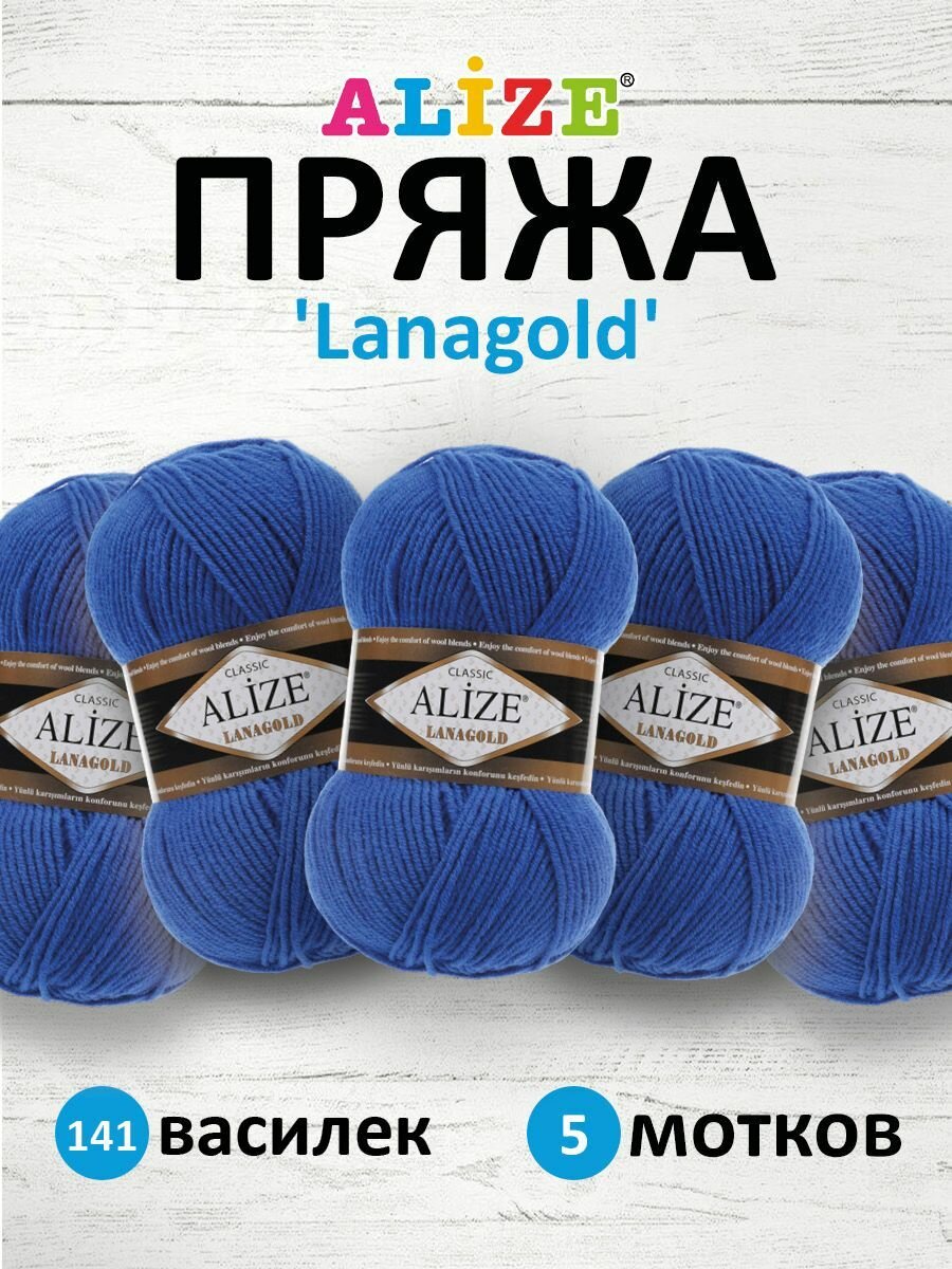 Купить Пряжа для вязания Alize Lanagold Classic 141 василек, 100 г, 240 м, 5 штук