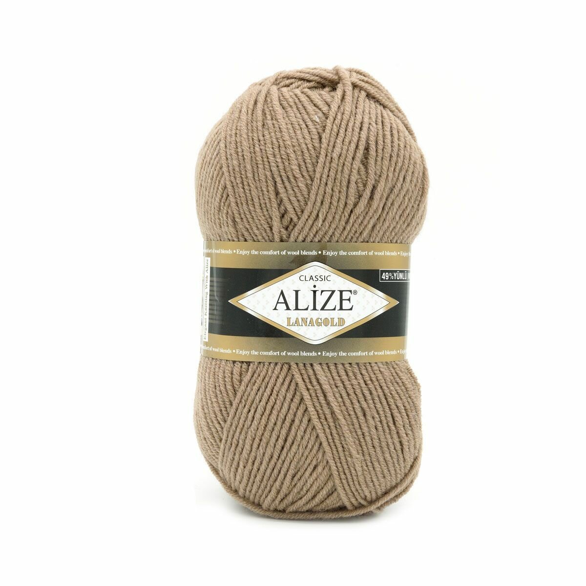 Пряжа Alize Lanagold (Ланаголд) - 2 шт Цвет: 466 темно-бежевый 49% шерсть, 51% акрил 100г 240м