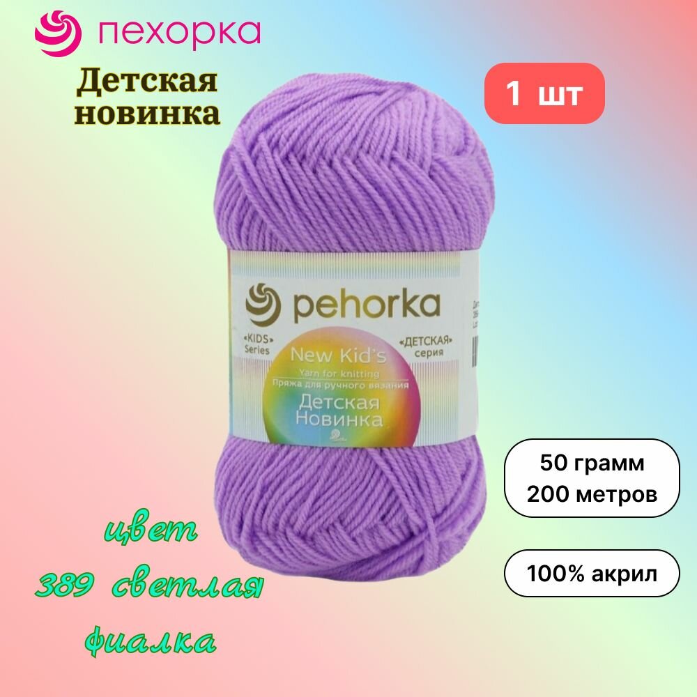Пряжа Пехорка Детская новинка 389 светлая фиалка 100% акрил высокообъемный 50г 200м 10шт