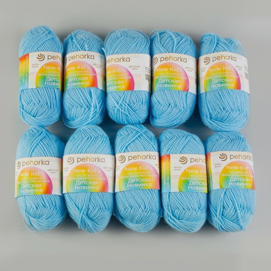 Пряжа Детская новинка (Пехорка), Т.Голубой - 15, 100% акрил высокообъёмный, 10 мотков, 50 г., 200 м.