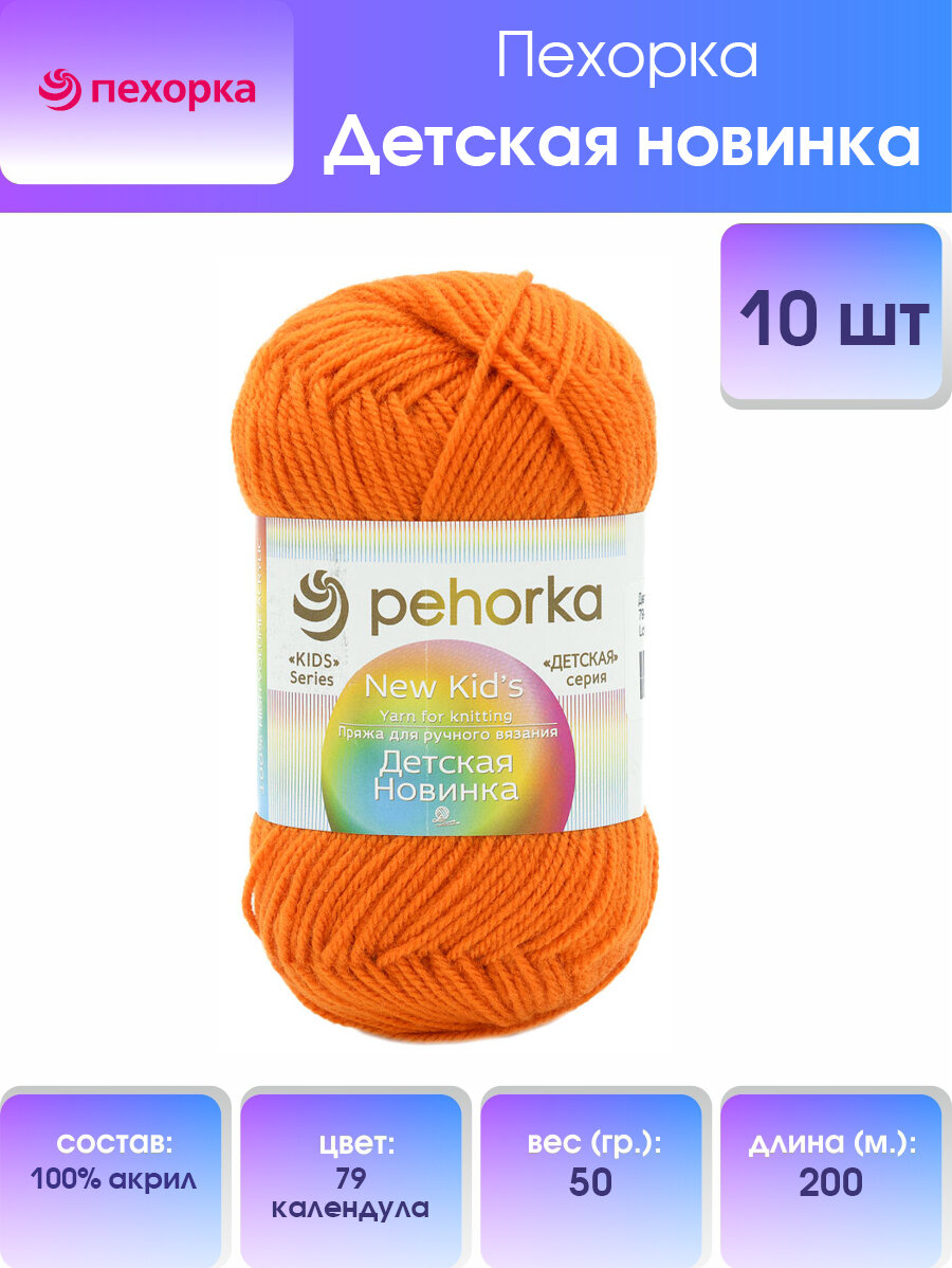 Ниже Вы можете прочитать отзывы на Пряжа для вязания Пехорка 'Детская новинка' 50 гр. 200 м. (100%акрил) (79 календула), 10 мотков, ознакомится с подробными характеристиками, посмотреть интересные обзоры и фотографии на Пряжа для вязания Пехорка 'Детская новинка' 50 гр. 200 м. (100%акрил) (79 календула), 10 мотков.