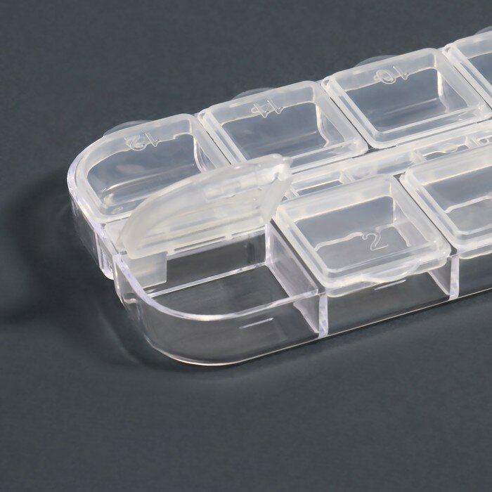 Контейнер для декора, 12 ячеек, 13 × 5,3 × 1,5 см, цвет прозрачный