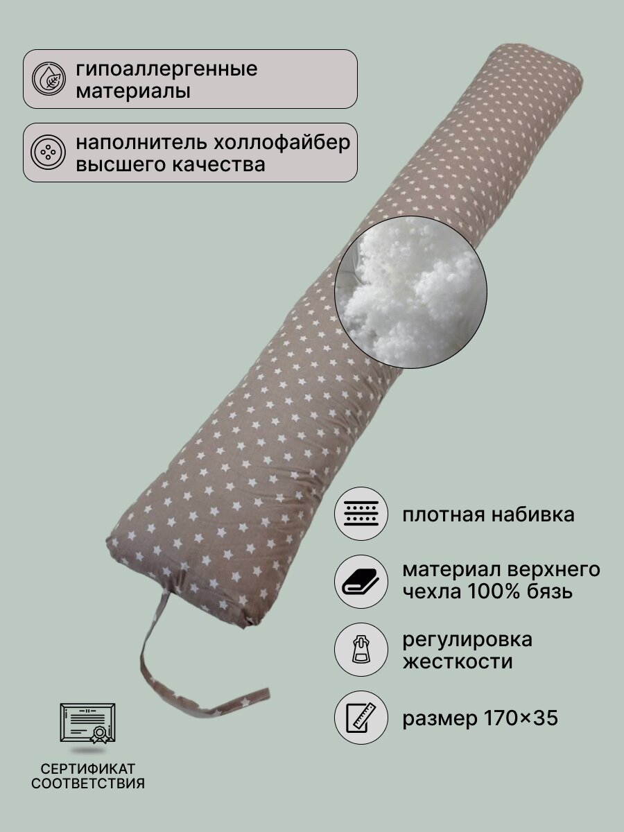 СохранитьПодушка для беременных Vensalio I-170 обнимашка "Звезды", коричневая 170х35 интересное: