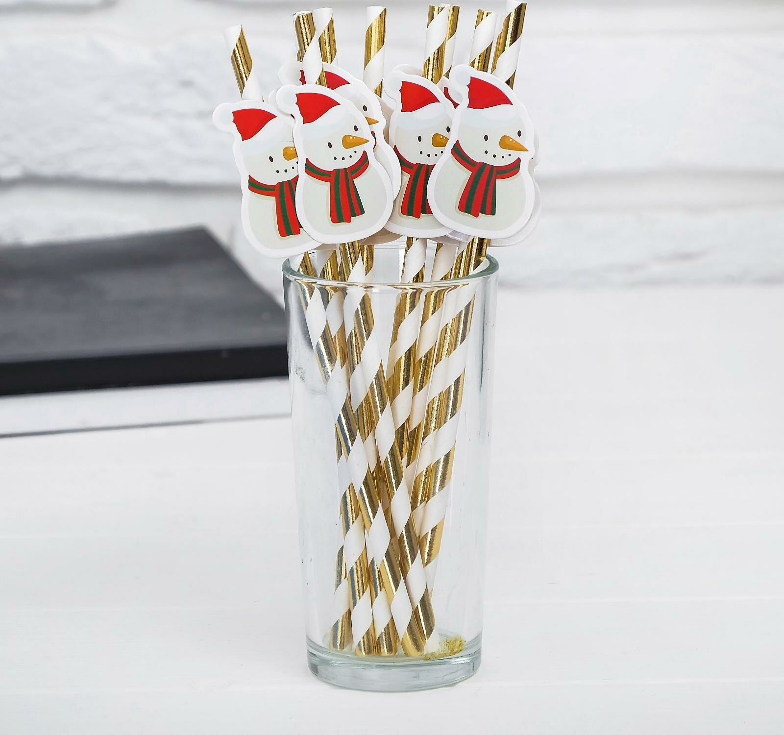 Трубочки для коктейля "Снеговик", набор 10 шт.