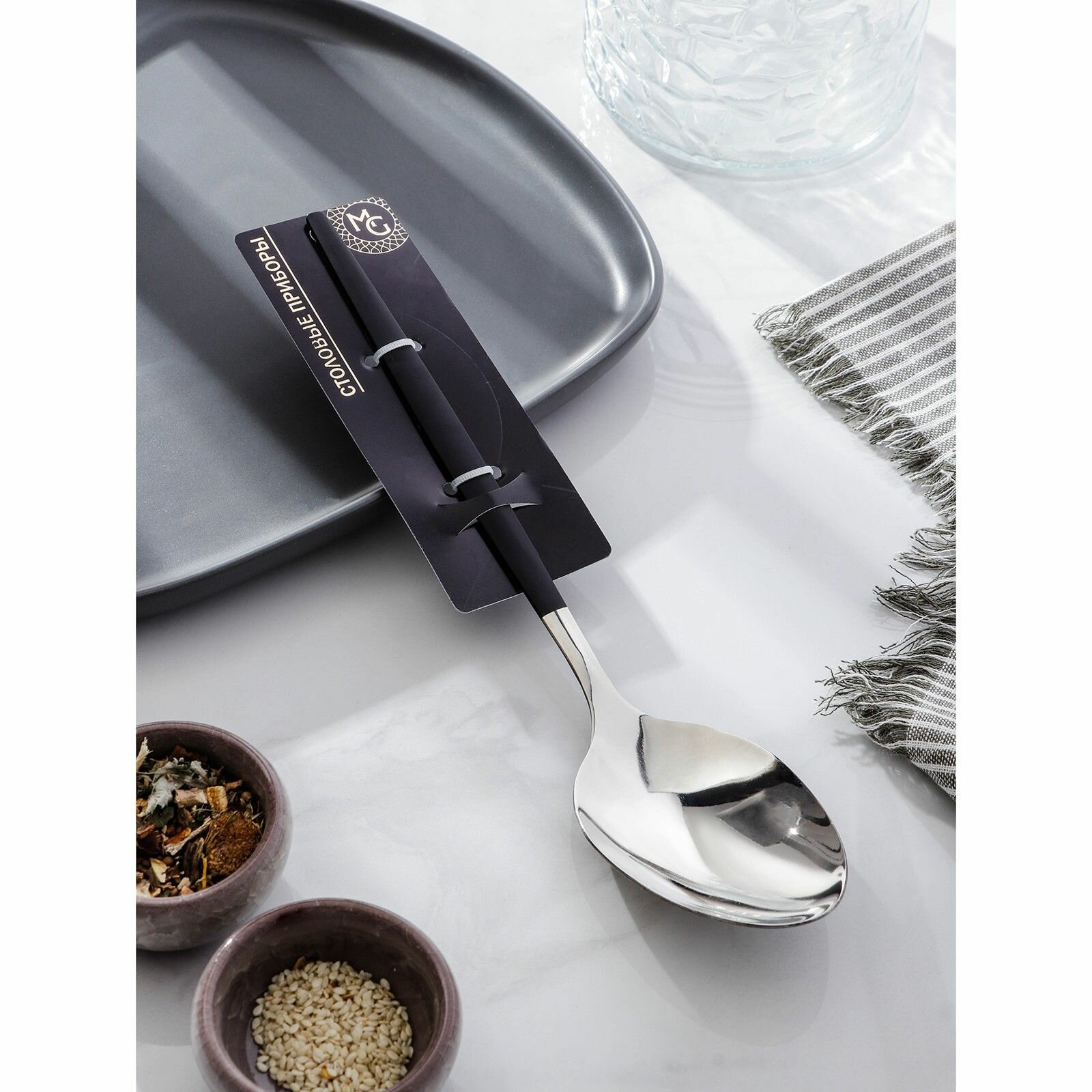 Купить Ложка гарнирная из нержавеющей стали Magistro «Грэйс», h=27,5 см, цвет ручки чёрный, цвет головы серебряный (арт. 7354122)