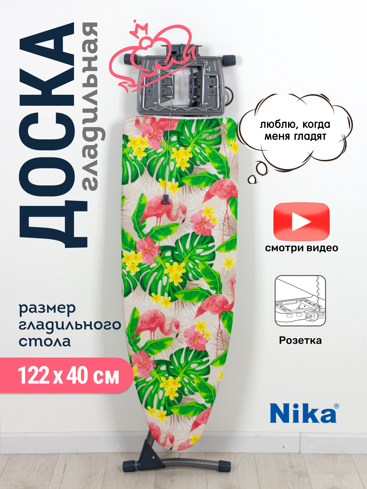 НИКА гладильная доска НИКА Гранд НГ/8 с фламинго