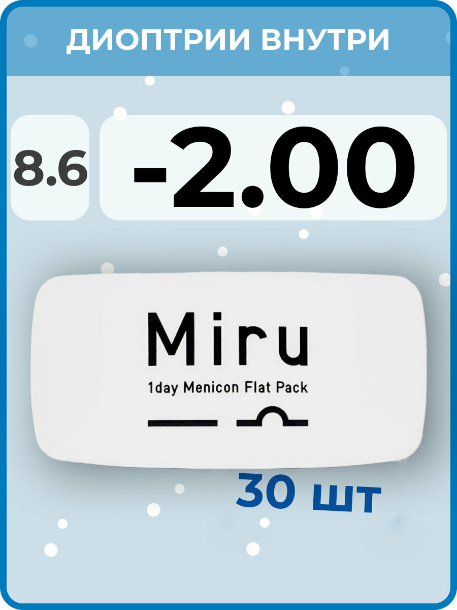 Контактные линзы Menicon Miru 1 day Flat Pack, 30 шт., R 8,6, D -2,00