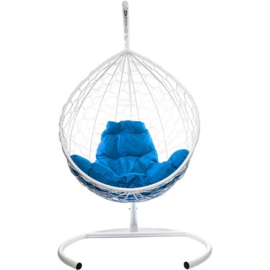 Подвесное кресло капля ротанг белое (без стойки), голубая подушка