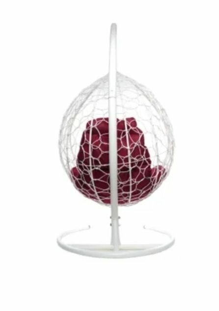 Подвесное кресло капля ротанг белое (без стойки), бордовая подушка