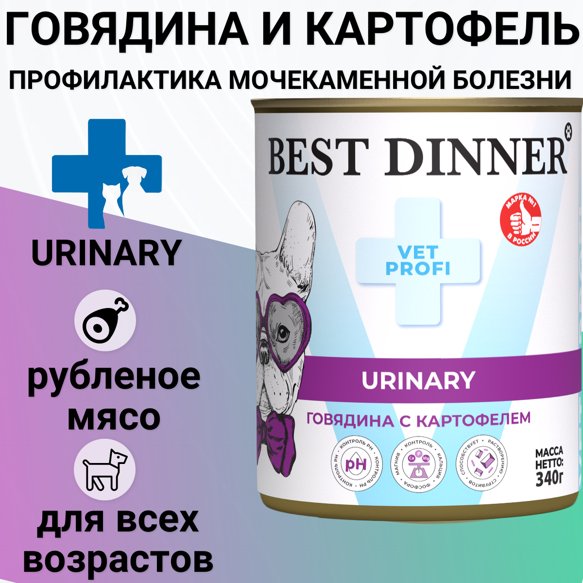 Влажный консервированный корм для собак Best Dinner Бест Диннер Urinary "Говядина с картофелем" Exclusive VET PROFI-340 гп. По 6 шт.