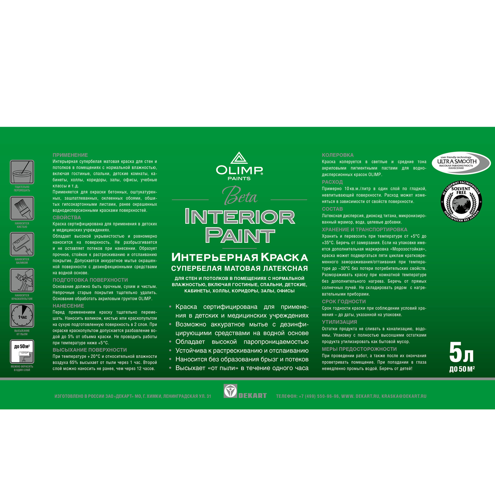 Купить Краска интерьерная латексная белая OLIMP Beta 5 л