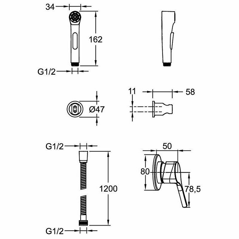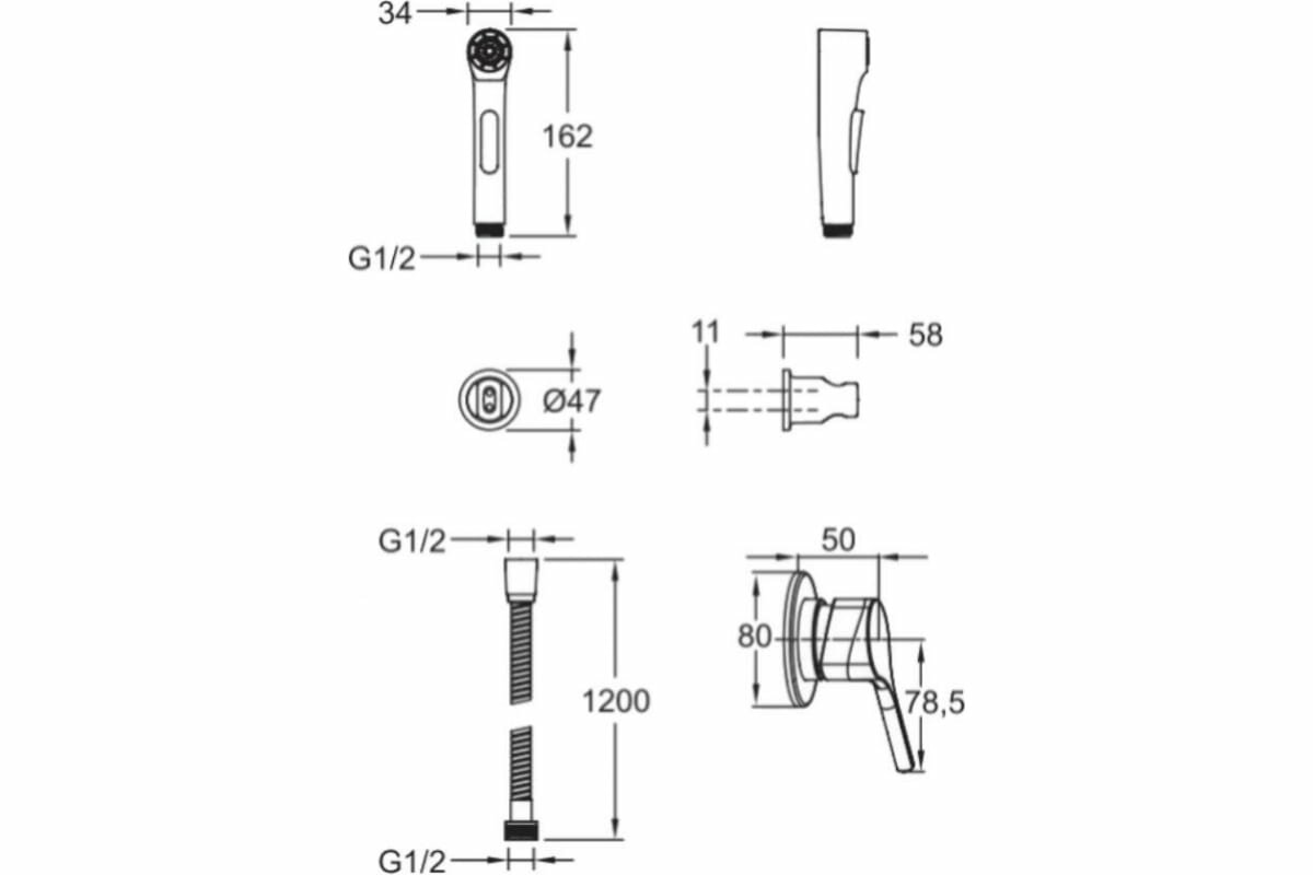 Elate, встраиваемый гигиенический душ, трехэлементный, пластик, арт. E24610-CP, Jacob Delafon