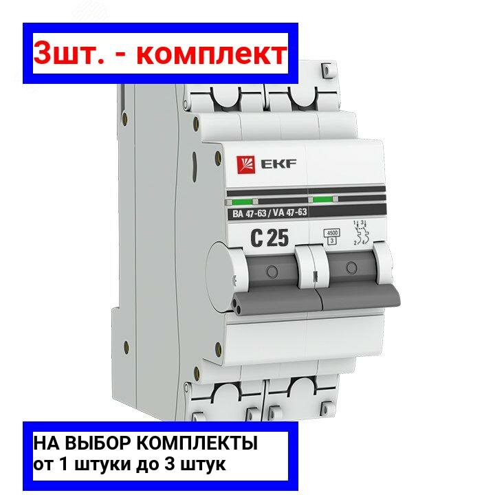 Купить 3шт. - Выключатель автоматический двухполюсный 25А С ВА47-63 4.5кА PROxima / EKF; арт. mcb4763-2-25C-pro; оригинал / - комплект 3шт