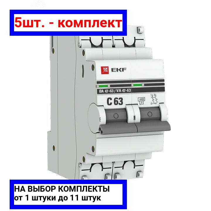 Купить 5шт. - Выключатель автоматический двухполюсный 63А С ВА47-63 4.5кА PROxima / EKF; арт. mcb4763-2-63C-pro; оригинал / - комплект 5шт