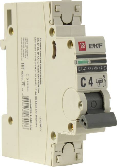 Купить Модульный автоматический выключатель ВА 47-63 PROxima 1 полюс, 4А, х-ка C mcb4763-1-04C-pro EKF