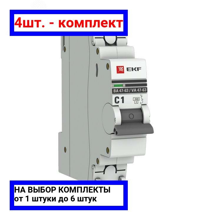 Купить 4шт. - Выключатель автоматический однополюсный 1А С ВА47-63 4.5кА PROxima / EKF; арт. mcb4763-1-01C-pro; оригинал / - комплект 4шт