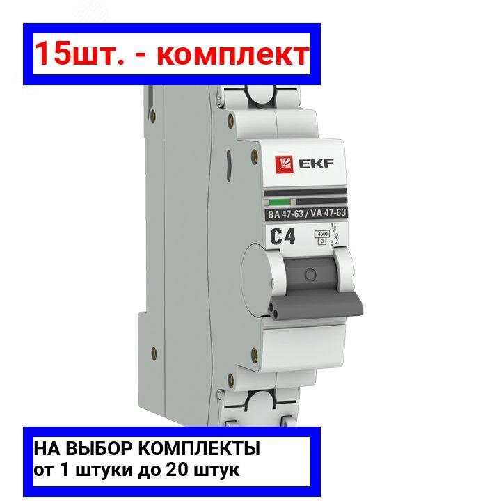 Купить 15шт. - Выключатель автоматический однополюсный 4А С ВА47-63 4.5кА PROxima / EKF; арт. mcb4763-1-04C-pro; оригинал / - комплект 15шт