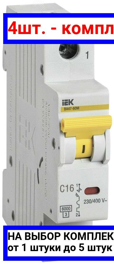 Купить 4шт. - Выключатель автоматический ВА47-60M 1Р 16А 6кА С / IEK; арт. MVA31-1-016-C; оригинал / - комплект 4шт