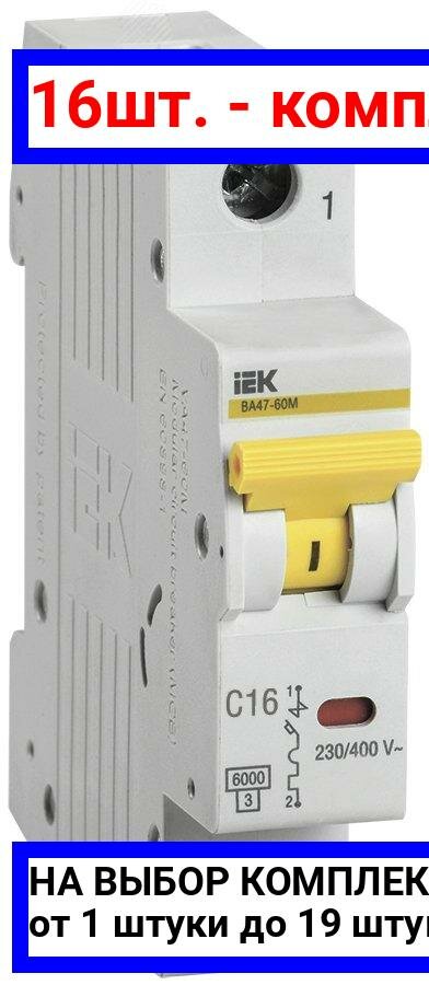 Купить 16шт. - Выключатель автоматический ВА47-60M 1Р 16А 6кА С / IEK; арт. MVA31-1-016-C; оригинал / - комплект 16шт