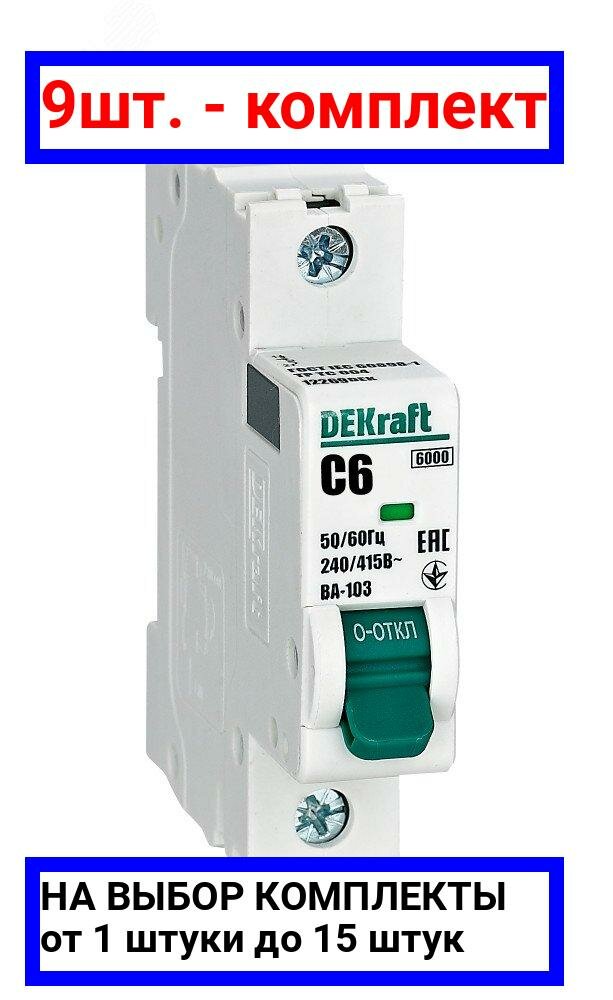 Сохранить9шт. - Выключатель автоматический 1Р 6А х-ка C ВА-103 6кА / Dekraft; арт. 12269DEK; оригинал / - комплект 9шт интересное: