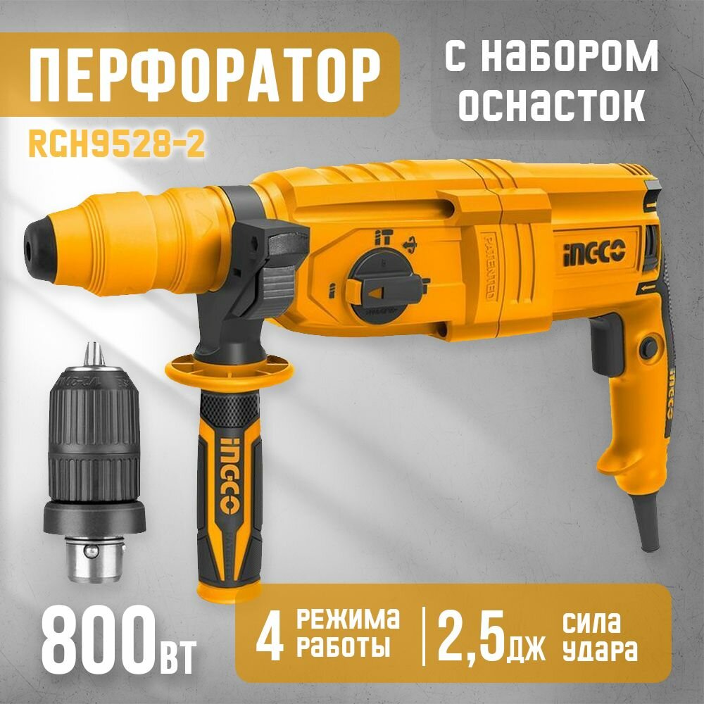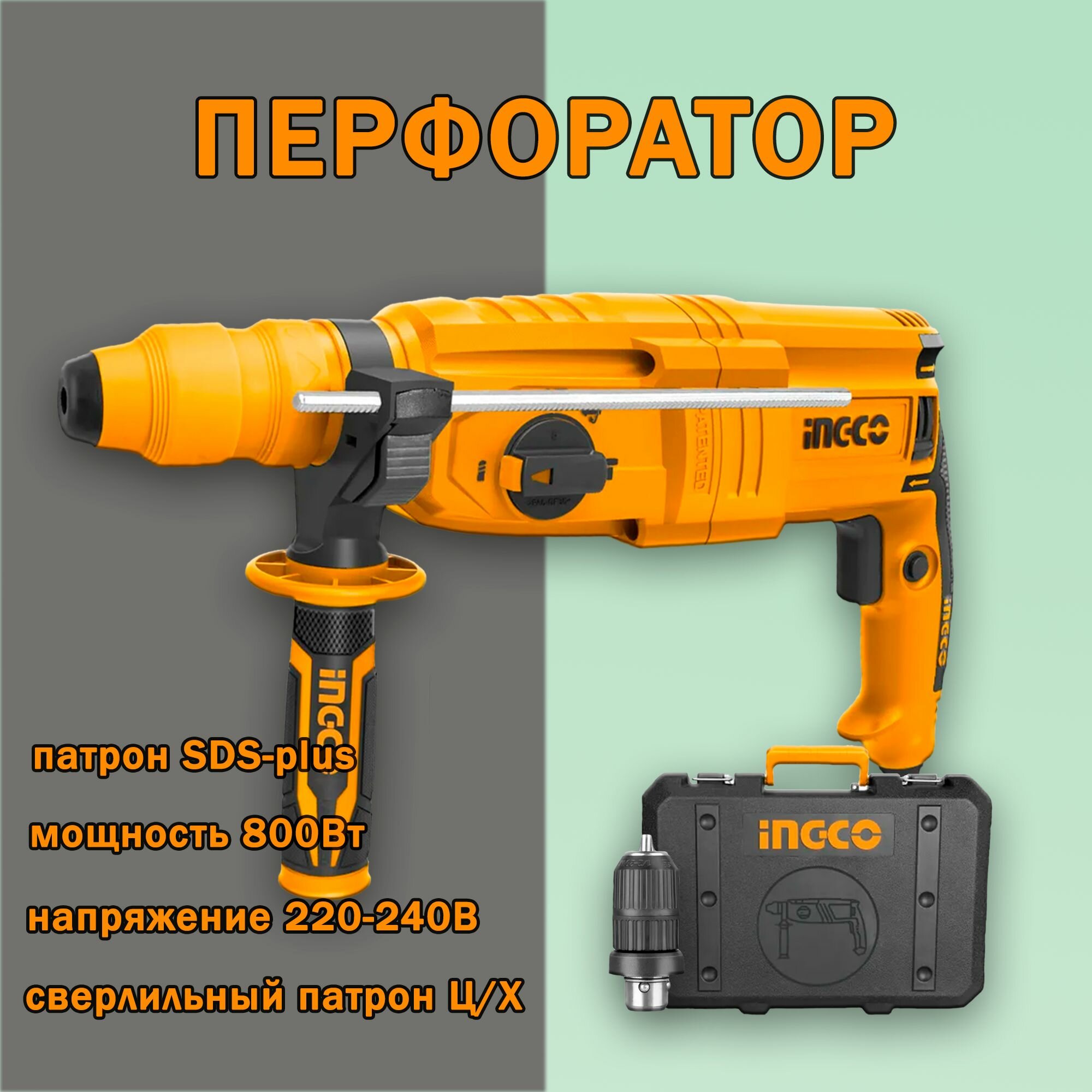 Перфоратор INGCO RGH9028-2 800Вт, 2.5Дж, SDS-plus, оснастка, кейс RGH9028-2 (Артикул: 4100017129) интересное: