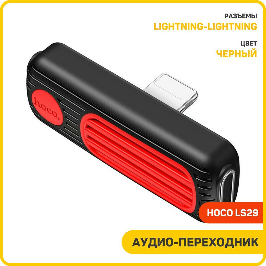 СохранитьПереходник адаптер HOCO LS29 Dual, Lightning to Lightning Charging + Lightning Music, 2А, Черный+Красный интересное:
