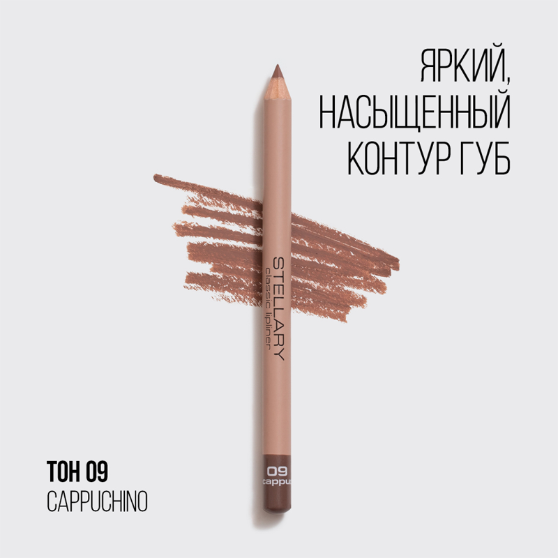 Карандаш для губ Stellary устойчивый, тон 09 cappuchino / кофейный