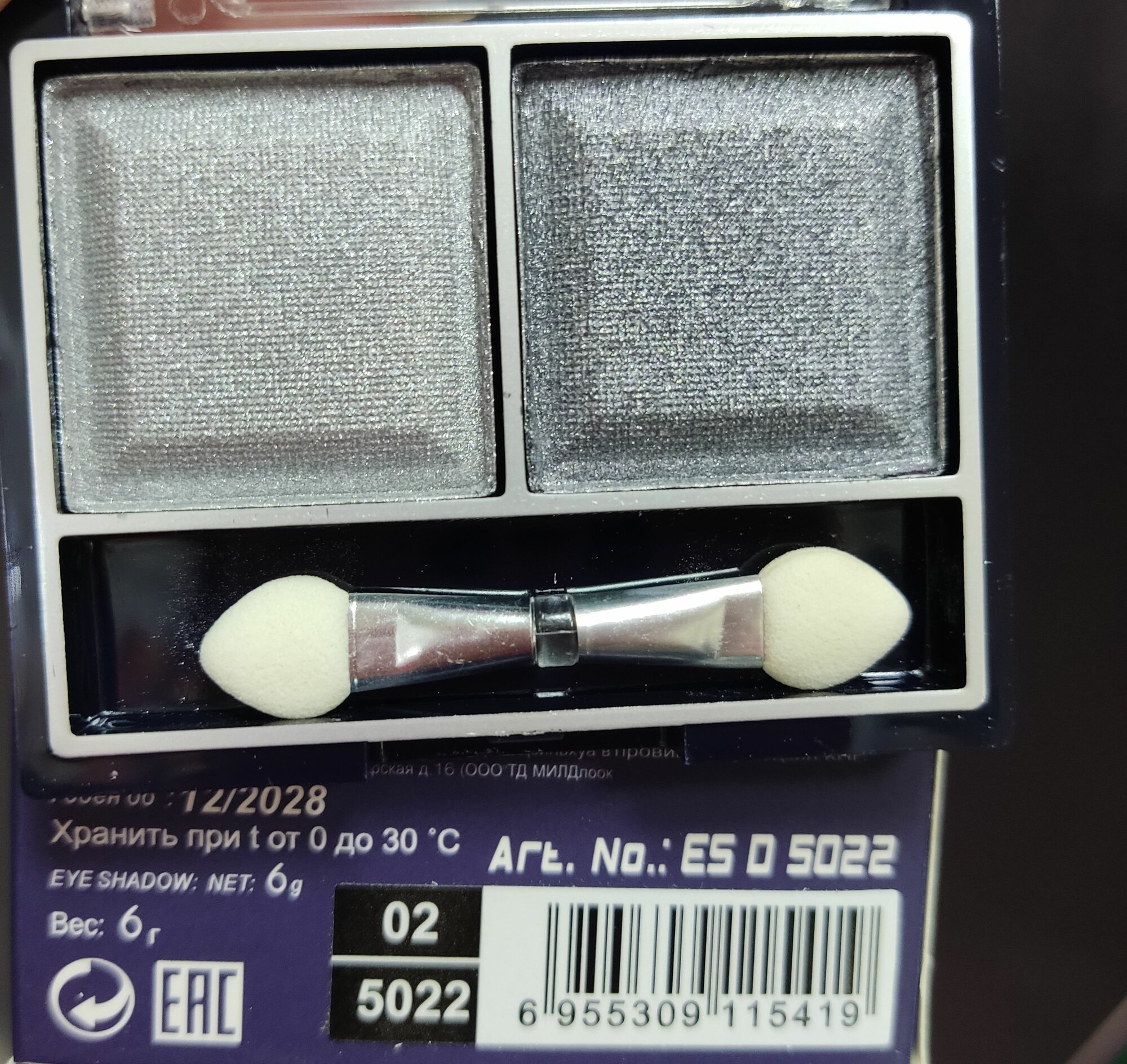 Тени D-5022 двухцвет.№36 сер.+бел.