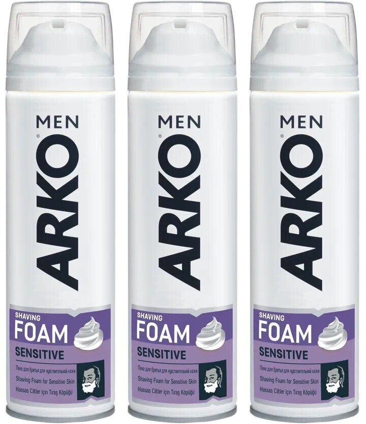 Пена для бритья Arko Sensitive, 200 мл, 3 шт.
