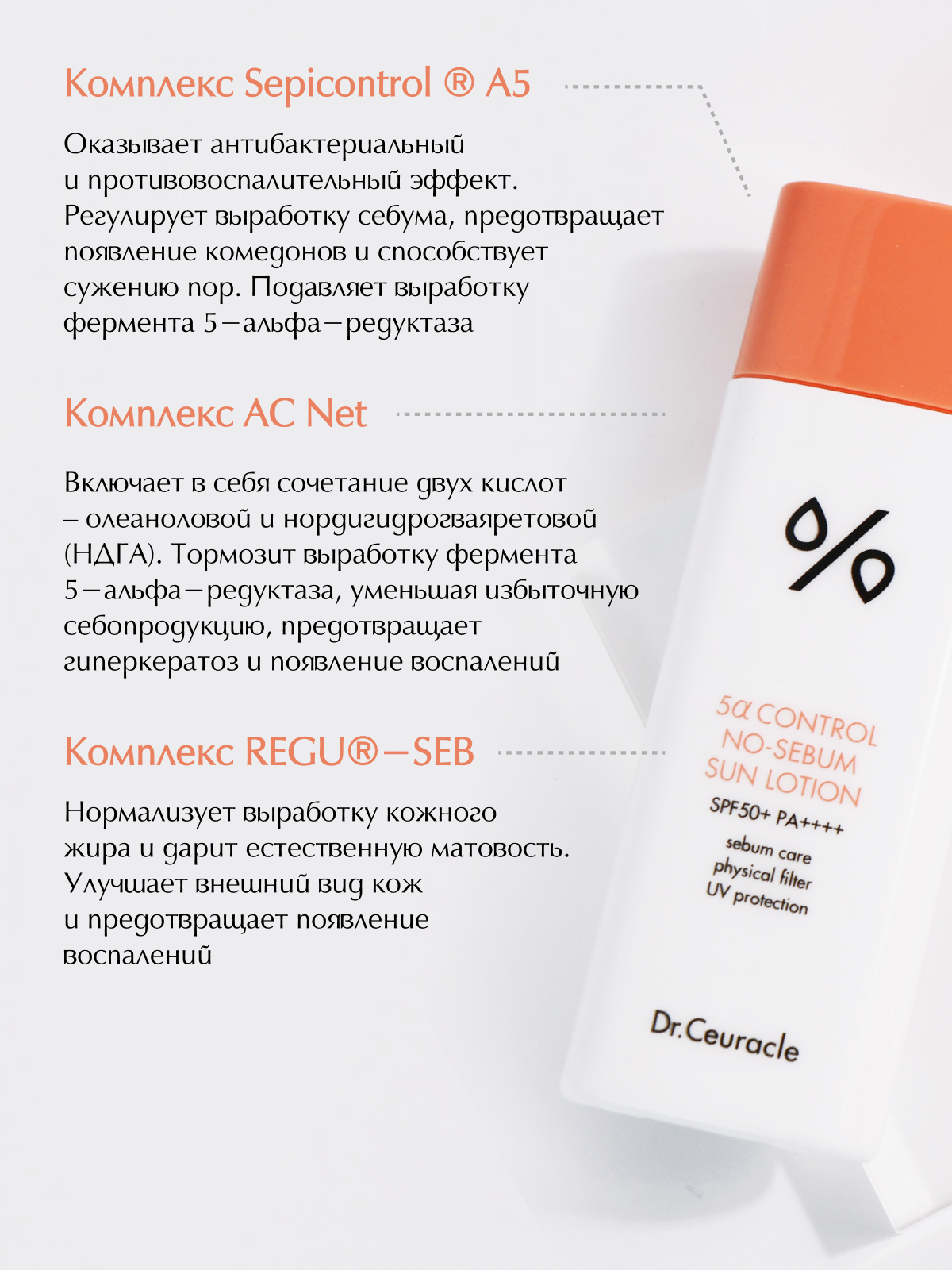 Dr.Ceuracle лосьон 5α Control No Sebum Sun Lotion SPF 50, 50 мл, 1 шт