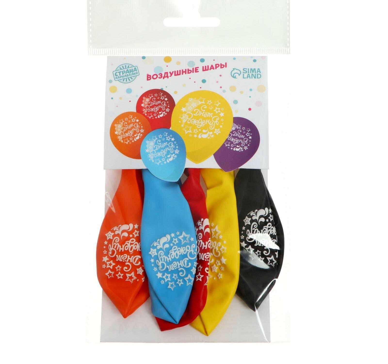 Страна Карнавалия Шар латексный «С днем рождения», диско, 5 шт., 12