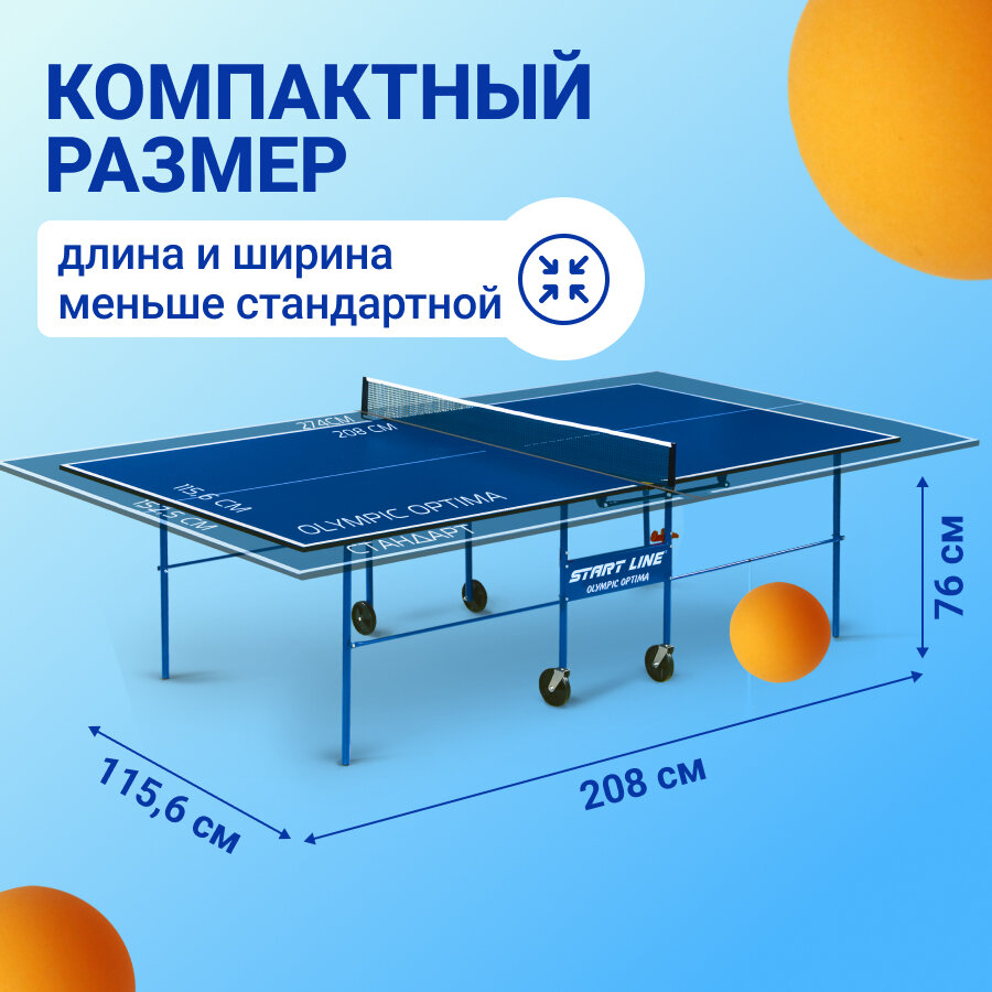 Купить Теннисный стол Start Line Olympic Optima (уменьшенный размер), для помещений, с встроенной сеткой
